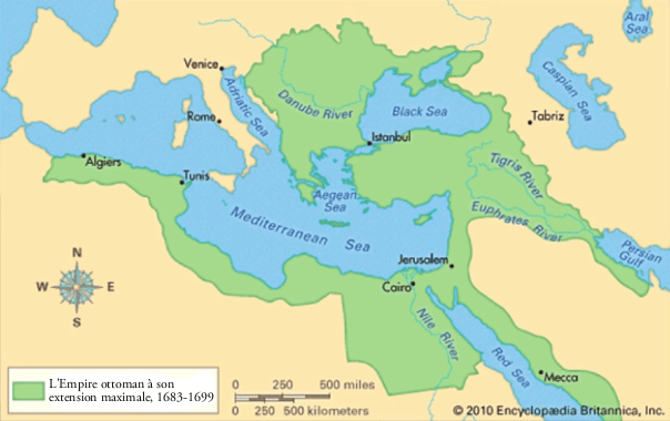 « La question d’Orient : un problème diplomatique posé au 19e et au début du 20e siècle par le démembrement de l’Empire ottoman et tournant autour de la lutte pour le contrôle des anciens territoires ottomans. Tout changement au sein des domaines turcs provoquait la tension parmi les puissances européennes qui craignaient toutes que l’une d’entre elles profite du désordre politique pour augmenter sa propre influence. » {Encyclopedia Britannica}