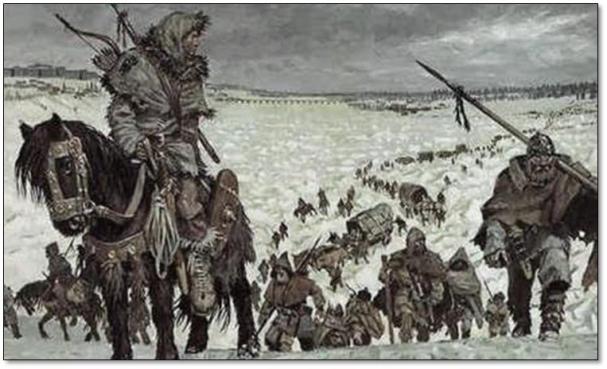 C’est ici l’attaque navale sur l’Empire romain d’Occident par Genséric, le chef vandale. Ce qui est intéressant c’est que, tandis que toutes ces guerres barbares avaient lieu, on nous dit que Justinien, qui était alors l’empereur à Constantinople, s’indignerait contre la sainte alliance.
