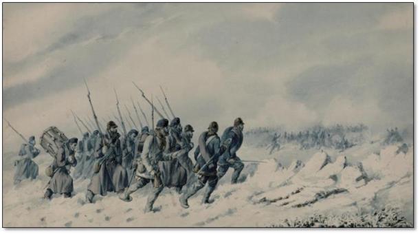 « La guerre de Crimée : Avec le soutien de la Grande-Bretagne et de la France, les Turcs déclarèrent la guerre à la Russie. La flotte turque fut détruite à Sinope, le port de la Mer Noire, après quoi, la Grande-Bretagne et la France déclarèrent la guerre à la Russie et débarquèrent des troupes en Crimée. En dépit de quelques victoires sanglantes, la guerre s’éternisa et les Russes refusaient d’arriver à un accord. Enfin, Sébastopol tomba. Mais ce n’est qu’après que l’Autriche eut menacé d’entrer dans la guerre que la Russie accepta de conclure la paix. Pendant la guerre de Crimée, beaucoup plus d’hommes moururent de maladies que sur le champ de bataille. » {Source inconnue}