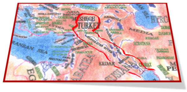 Comme c’est vrai aujourd’hui aussi. Vous avez ici deux noms : Méshec et Kédar, qui forment à eux deux une coalition contre le roi David. Encore une fois, vous regardez sur une ancienne carte et où trouvez-vous Méshec ? Méshec c’est la Turquie, la source du fleuve de l’Euphrate, et Kédar ce sont les nations arabes en-dessous.